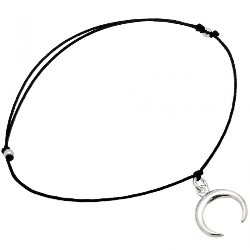 Przedmiotem sprzedaży jest bransoletka na cienkim sznurku z zawieszką w kształcie księżyca wykonanego z najwyższej jakości srebra próby 925.