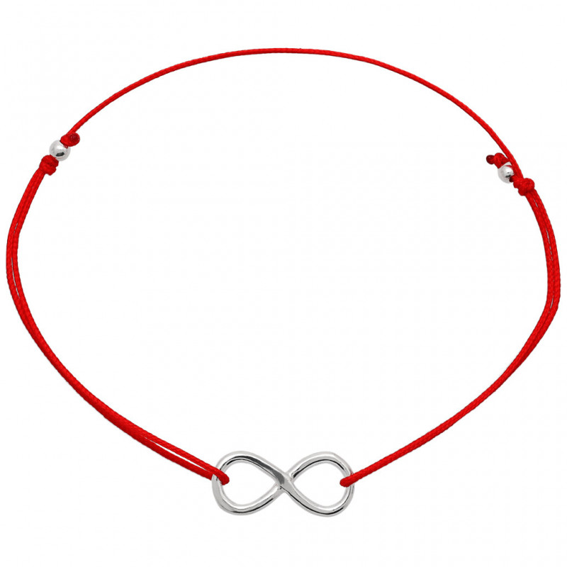Przedmiotem sprzedaży jest bransoletka na cienkim sznurku z zawieszką w kształcie znaku nieskończoności wykonanego z najwyższej jakości srebra próby 925.