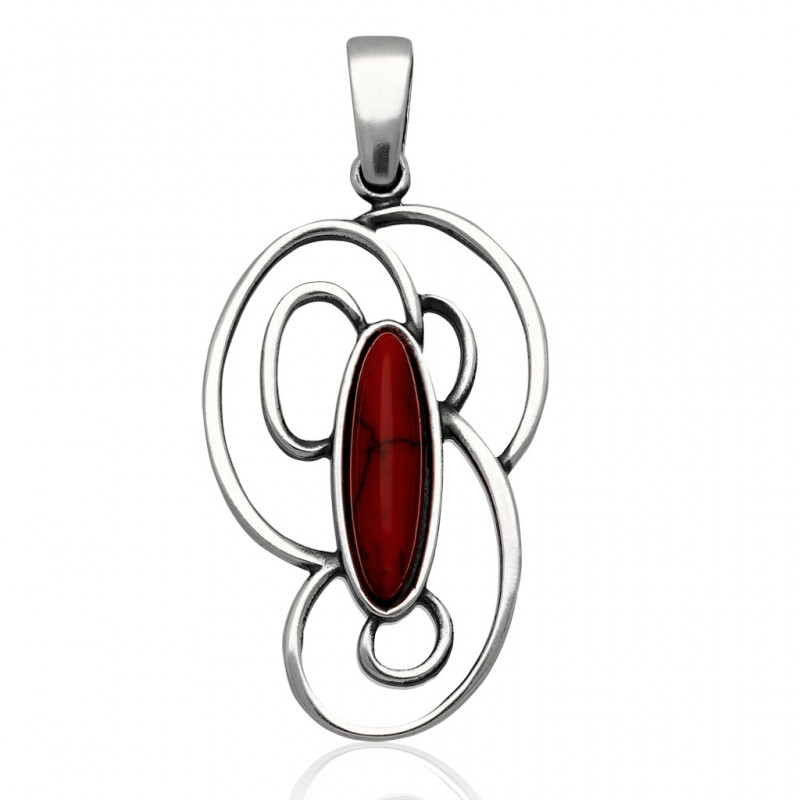 Przedmiotem sprzedaży jest piękny oksydowany* wisior wykonany z najwyższej jakości srebra próby 925 ozdobiony koralem.