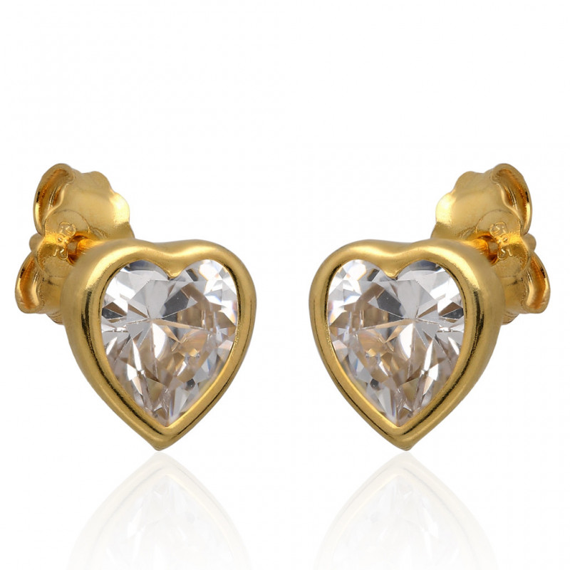 Piękne kolczyki serduszka na sztyfcie wykonane w całości z najwyższej jakości złota próby 585 ozdobione kryształowymi cyrkoniami.