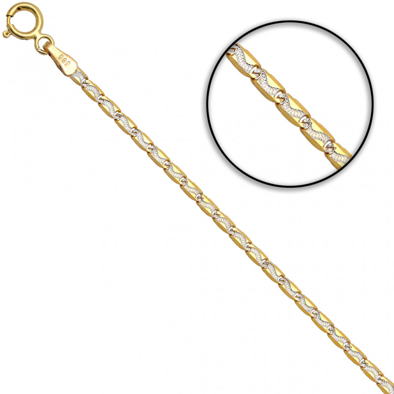 Przedmiotem sprzedaży jest łańcuszek złoty pełny blaszka z białym złotem.Produkt solidnie i precyzyjnie wykonany przez Włoskich producentów z najwyższej jakości 14 karatowego złota próby 585. Łańcuszek jest diamentowany dzięki czemu pięknie się błyszczy.