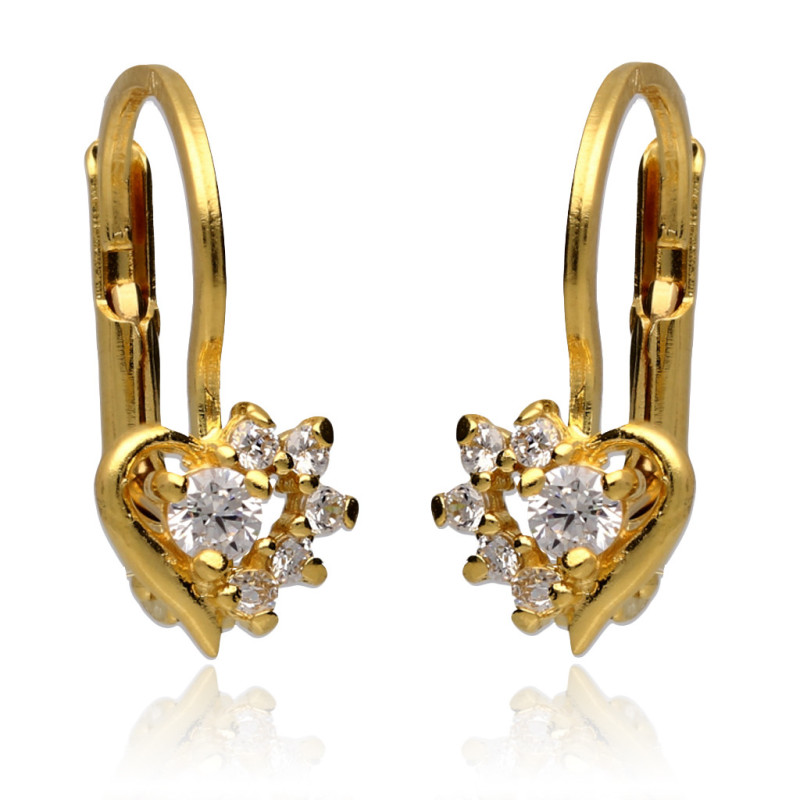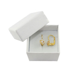 Piękne kolczyki serduszka na angielskim zapięciu wykonane w całości z najwyższej jakości złota próby 585 ozdobione kryształowymi cyrkoniami.