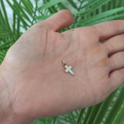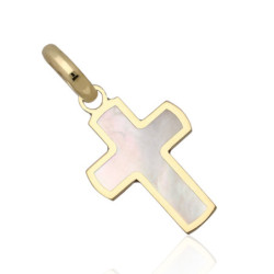 Przedmiotem sprzedaży jest krzyżyk złoty z masą perłową.