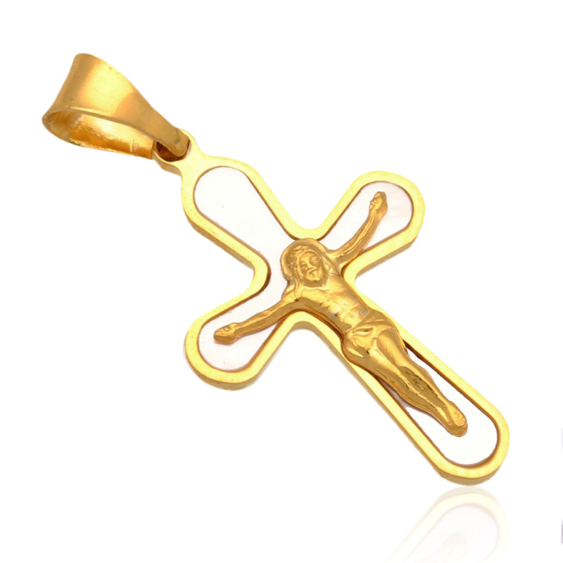 Przedmiotem sprzedaży jest krzyżyk złoty z wizerunkiem ukrzyżowanego Jezusa Chrystusa na masie perłowej.