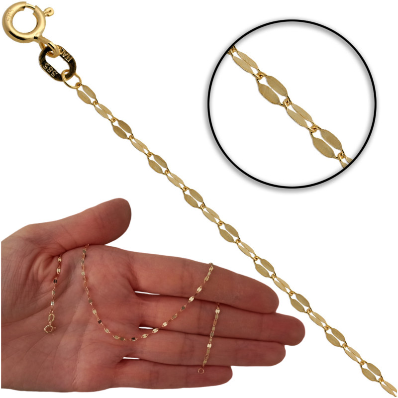 Przedmiotem sprzedaży jest bransoletka złota blaszki.Produkt solidnie i precyzyjnie wykonany przez Włoskich producentów z najwyższej jakości 14 karatowego złota próby 585.