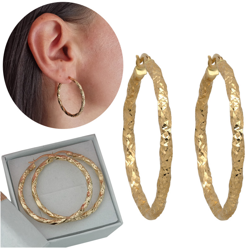 Kolczyki złote KÓŁKA skręcane diamentowane KOŁA 3cm ZŁOTO 585