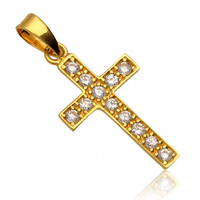 Przedmiotem sprzedaży jest krzyżyk złoty wysadzany cyrkoniami bez wizerunku. Produkt solidnie i precyzyjnie wykonany przez Włoskich producentów z najwyższej jakości złota próby 585/14K.