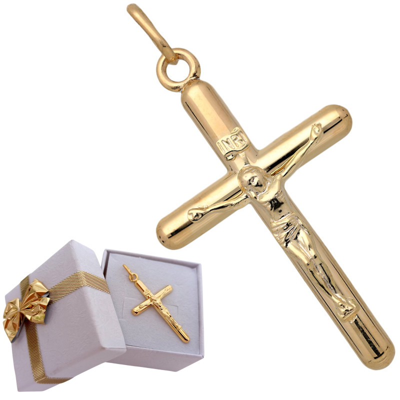 Przedmiotem sprzedaży jest krzyżyk złoty z wizerunkiem ukrzyżowanego Jezusa Chrystusa.