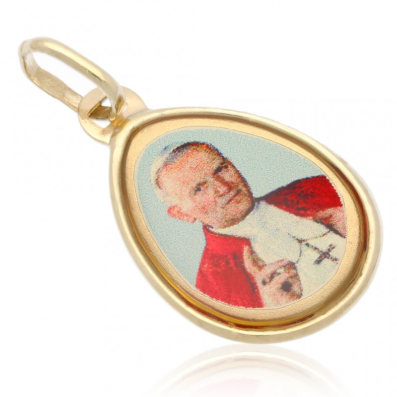 Medalik złoty Jan Paweł II z kolorową emalią wykonany z najwyższej jakości złota próby 585/14K.