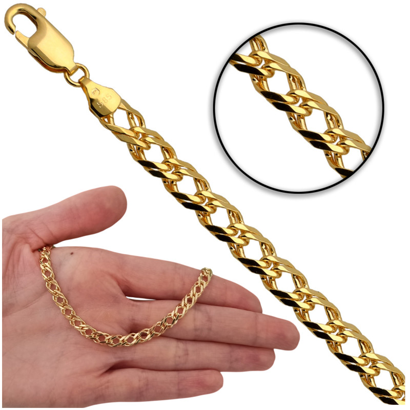 Przedmiotem sprzedaży jest łańcuszek złoty pełny rombo doppio.Produkt solidnie i precyzyjnie wykonany przez Włoskich producentów z najwyższej jakości 14 karatowego złota próby 585. Łańcuszek jest diamentowany dzięki czemu pięknie się błyszczy.