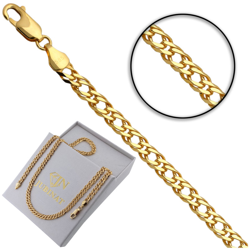 Przedmiotem sprzedaży jest łańcuszek złoty pełny rombo doppio.Produkt solidnie i precyzyjnie wykonany przez Włoskich producentów z najwyższej jakości 14 karatowego złota próby 585. Łańcuszek jest diamentowany dzięki czemu pięknie się błyszczy.