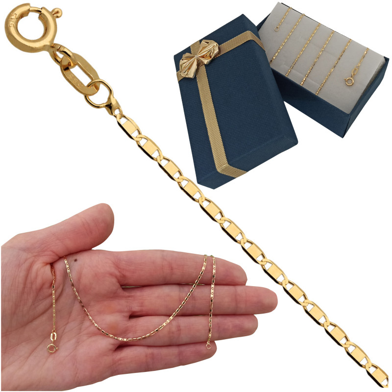 Przedmiotem sprzedaży jest łańcuszek złoty pełny żyletka gęsta.Produkt solidnie i precyzyjnie wykonany przez Włoskich producentów z najwyższej jakości 14 karatowego złota próby 585. Łańcuszek jest diamentowany dzięki czemu pięknie się błyszczy.
