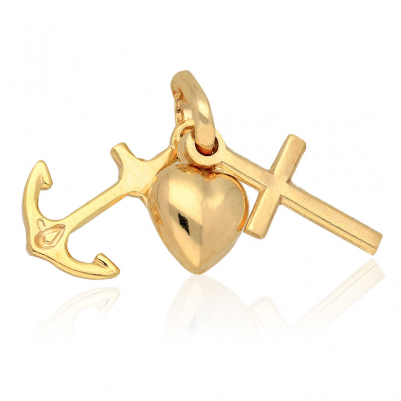 Piękny wisior z zawieszkami w kształcie krzyża, kotwicy i serca symbolizujące wiarę, nadzieje i miłość. Wisior wykonany w całości z najwyższej jakości złota próby 585.