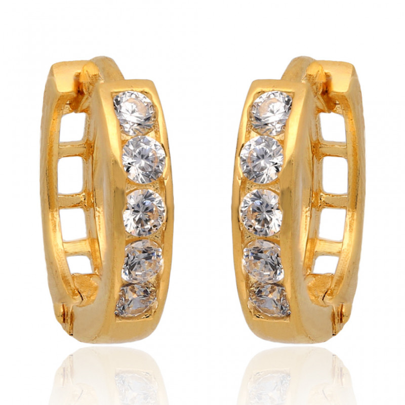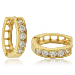 Piękne kolczyki kółka na angielskim zapięciu wysadzane kryształowymi cyrkoniami. Kolczyki wykonane w całości z najwyższej jakości złota próby 585.