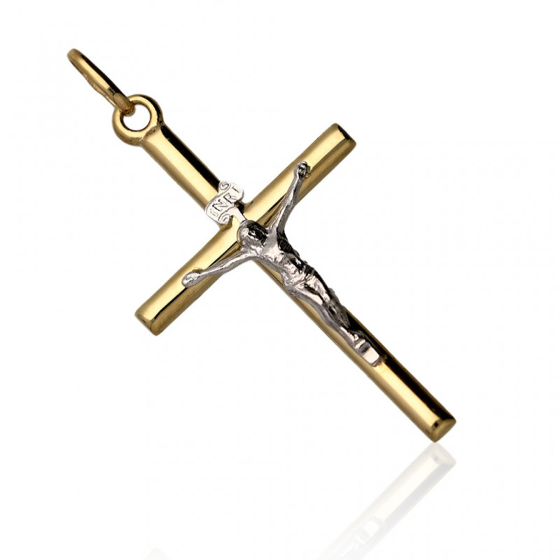 Przedmiotem sprzedaży jest krzyżyk złoty z wizerunkiem ukrzyżowanego Jezusa Chrystusa.