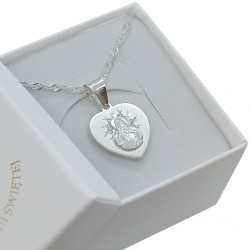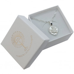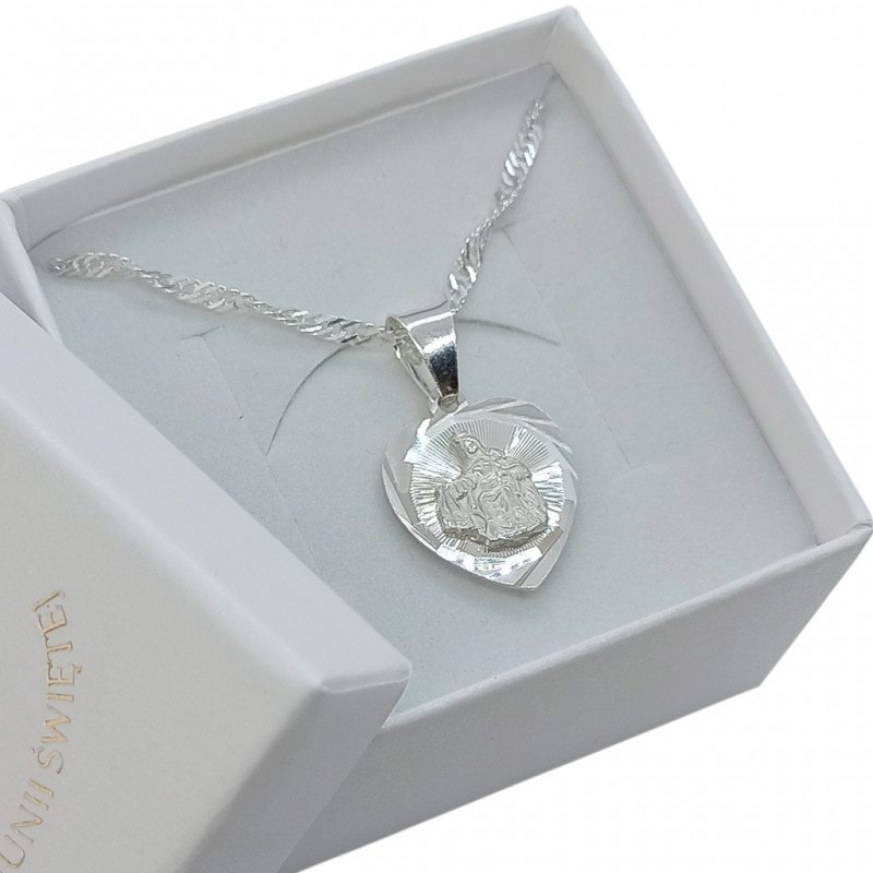 Przedmiotem sprzedaży jest srebrny zestaw komunijny składający się z medalika i łańcuszka. Komplet wykonany z najwyższej jakości srebra próby 925.