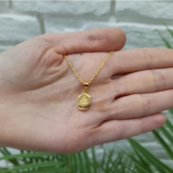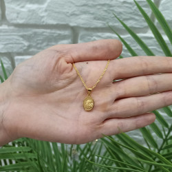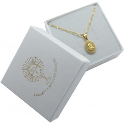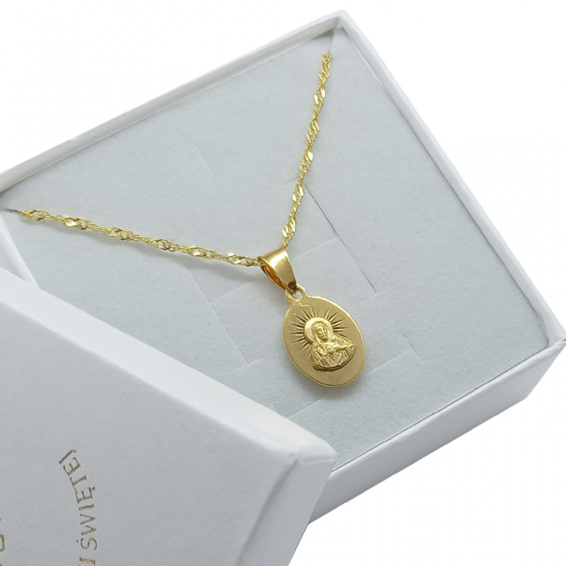 Przedmiotem sprzedaży jest srebrny zestaw komunijny składający się z pozłacanego łańcuszka i medalika. Komplet wykonany z najwyższej jakości srebra próby 925.