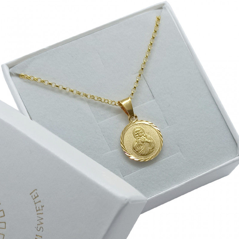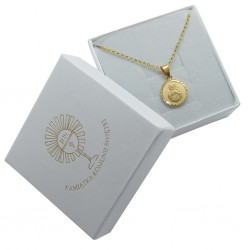 Przedmiotem sprzedaży jest srebrny zestaw komunijny składający się z pozłacanego łańcuszka i medalika. Komplet wykonany z najwyższej jakości srebra próby 925.