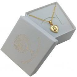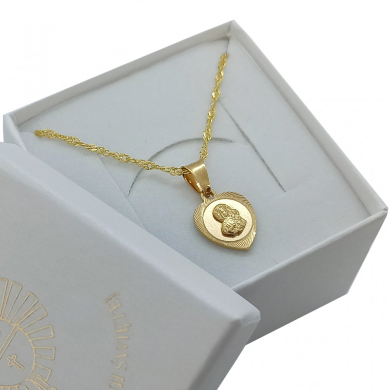 Przedmiotem sprzedaży jest srebrny zestaw komunijny składający się z pozłacanego łańcuszka i medalika. Komplet wykonany z najwyższej jakości srebra próby 925.