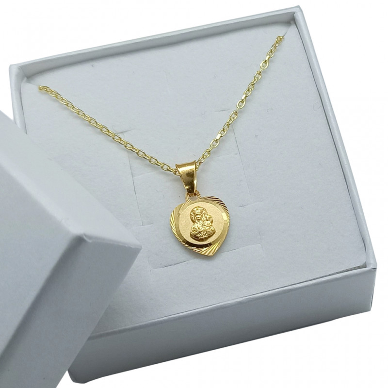 Przedmiotem sprzedaży jest srebrny zestaw komunijny składający się z pozłacanego łańcuszka i medalika. Komplet wykonany z najwyższej jakości srebra próby 925.