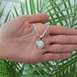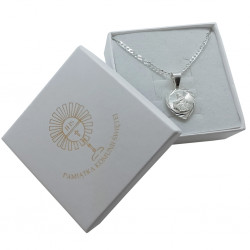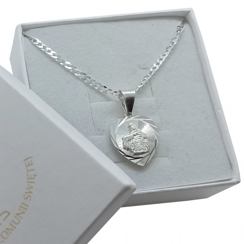 Przedmiotem sprzedaży jest srebrny zestaw komunijny składający się z medalika i łańcuszka. Komplet wykonany z najwyższej jakości srebra próby 925.