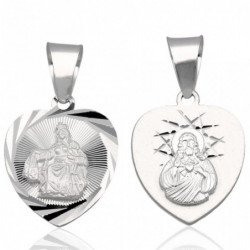 Jedna strona medalika przedstawia wizerunek Matki Bożej Szkaplerznej, a druga Serce Pana Jezusa.