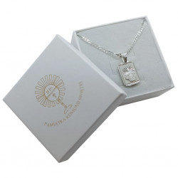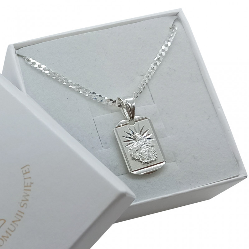 Przedmiotem sprzedaży jest srebrny zestaw komunijny składający się z medalika i łańcuszka. Komplet wykonany z najwyższej jakości srebra próby 925.