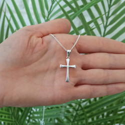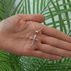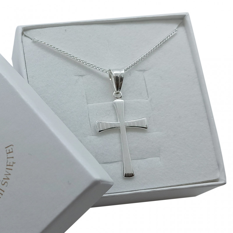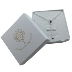 Przedmiotem sprzedaży jest srebrny zestaw komunijny składający się z łańcuszka i krzyżyka. Komplet wykonany z najwyższej jakości srebra próby 925.