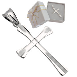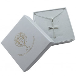 Przedmiotem sprzedaży jest srebrny zestaw komunijny składający się z łańcuszka i krzyżyka. Komplet wykonany z najwyższej jakości srebra próby 925.
