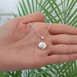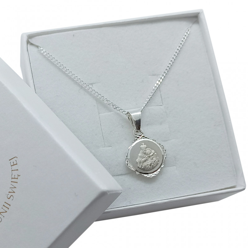 Przedmiotem sprzedaży jest srebrny zestaw komunijny składający się z medalika i łańcuszka. Komplet wykonany z najwyższej jakości srebra próby 925.