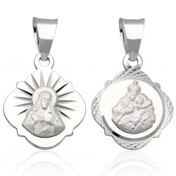 Jedna strona medalika przedstawia wizerunek Matki Bożej Szkaplerznej, a druga Serce Pana Jezusa.