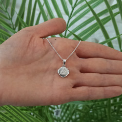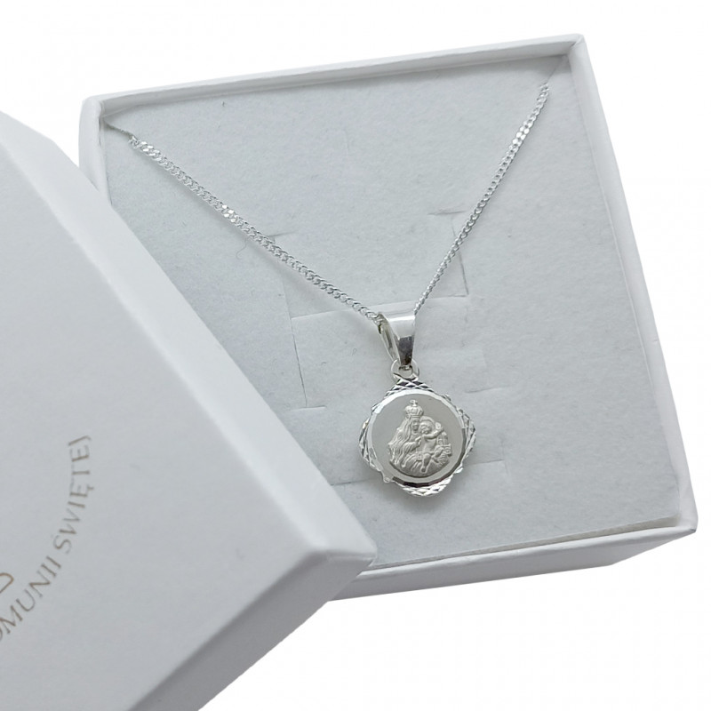 Przedmiotem sprzedaży jest srebrny zestaw komunijny składający się z medalika i łańcuszka. Komplet wykonany z najwyższej jakości srebra próby 925.