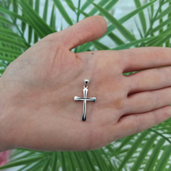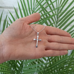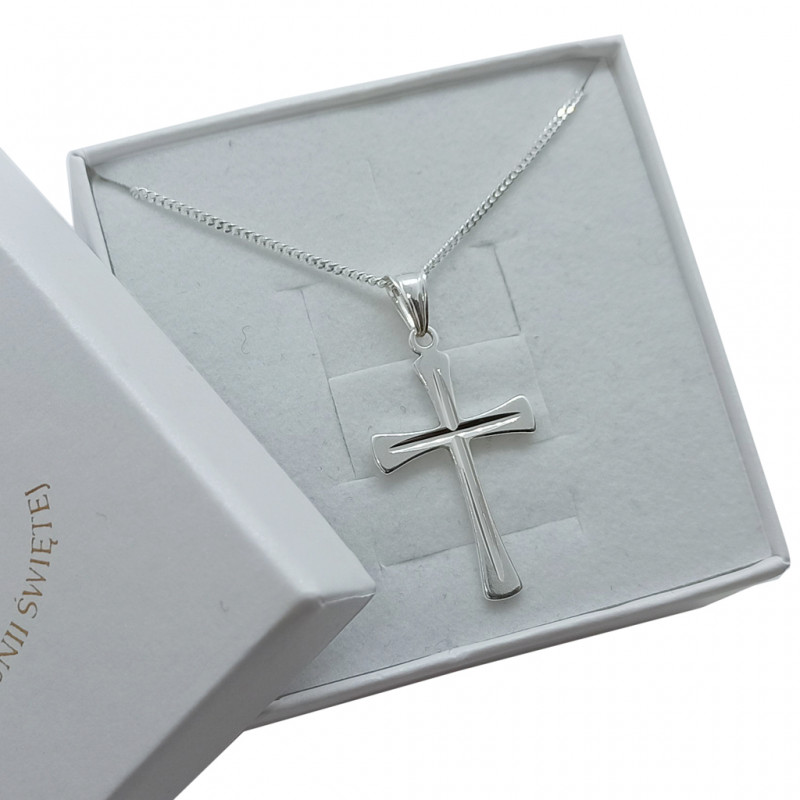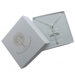 Przedmiotem sprzedaży jest srebrny zestaw komunijny składający się z łańcuszka i krzyżyka. Komplet wykonany z najwyższej jakości srebra próby 925.