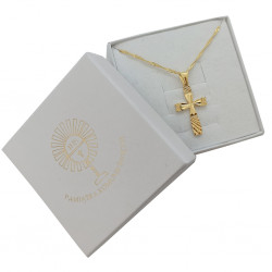 Przedmiotem sprzedaży jest srebrny zestaw komunijny składający się z pozłacanego łańcuszka i krzyżyka. Komplet wykonany z najwyższej jakości srebra próby 925.