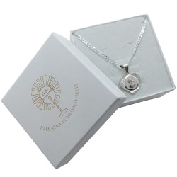 Biżuteria jest nowa z metką jubilerską, posiada wybitą próbę 925 lub znak imienny producenta potwierdzający autentyczność metalu szlachetnego.