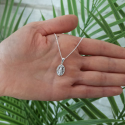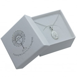 Przedmiotem sprzedaży jest srebrny zestaw komunijny składający się z łańcuszka i cudownego medalika. Komplet wykonany z najwyższej jakości srebra próby 925.