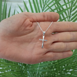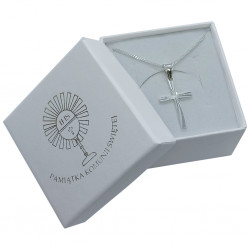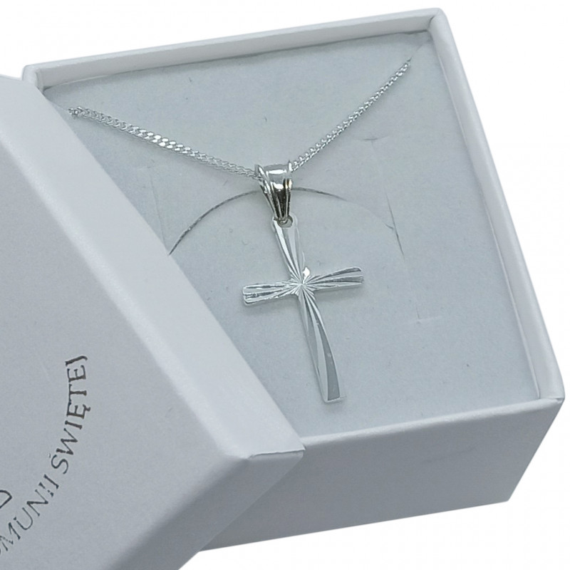 Przedmiotem sprzedaży jest srebrny zestaw komunijny składający się z łańcuszka i krzyżyka. Komplet wykonany z najwyższej jakości srebra próby 925.