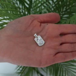 Medalik jest nowy z metką jubilerską, posiada wybitą próbę 925 lub znak imienny producenta potwierdzający autentyczność metalu szlachetnego.